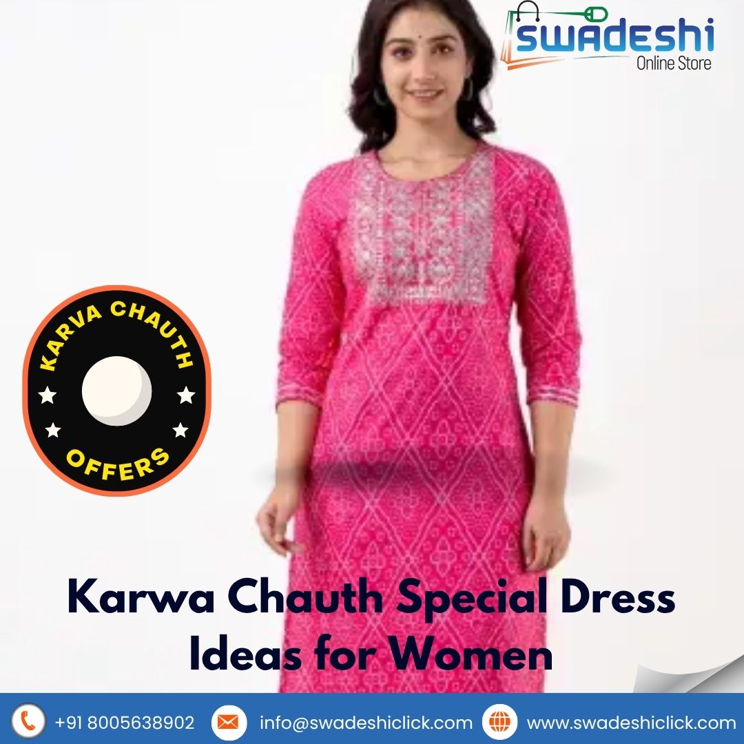 If you’re planning your karva chauth shopping, this guide will help you explore stunning karwa chauth clothes crafted from authentic Indian prints and breathable fabrics. At Swadeshi Click, we offer a range of festive outfits in 100% cotton clothing for women, making your celebration not only stylish but also comfortable.